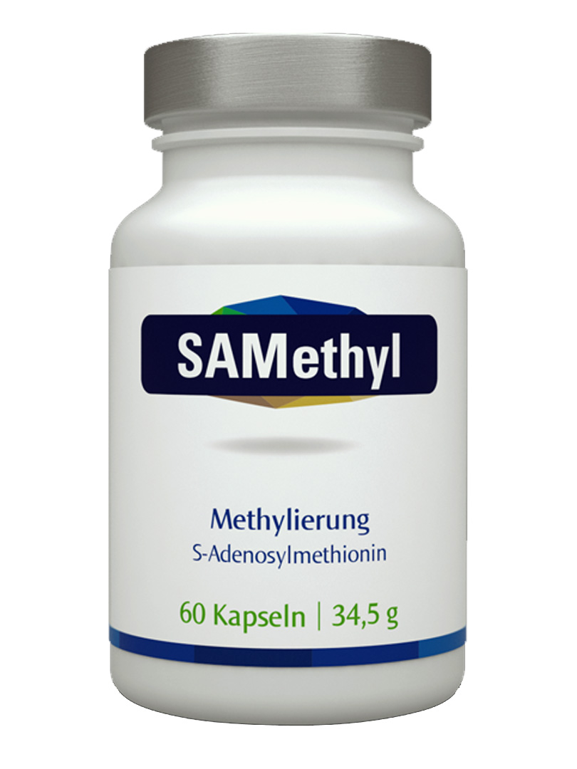 Suplement diety z S-adenozylometioniną i witaminami. S-adenozylometionina to naturalna substancja chemiczna, pochodna metioniny i adenozyny, która występuje w każdej komórce organizmu i odpowiada za jej prawidłowe funkcjonowanie. Pozytywnie wpływa na pracę watroby.